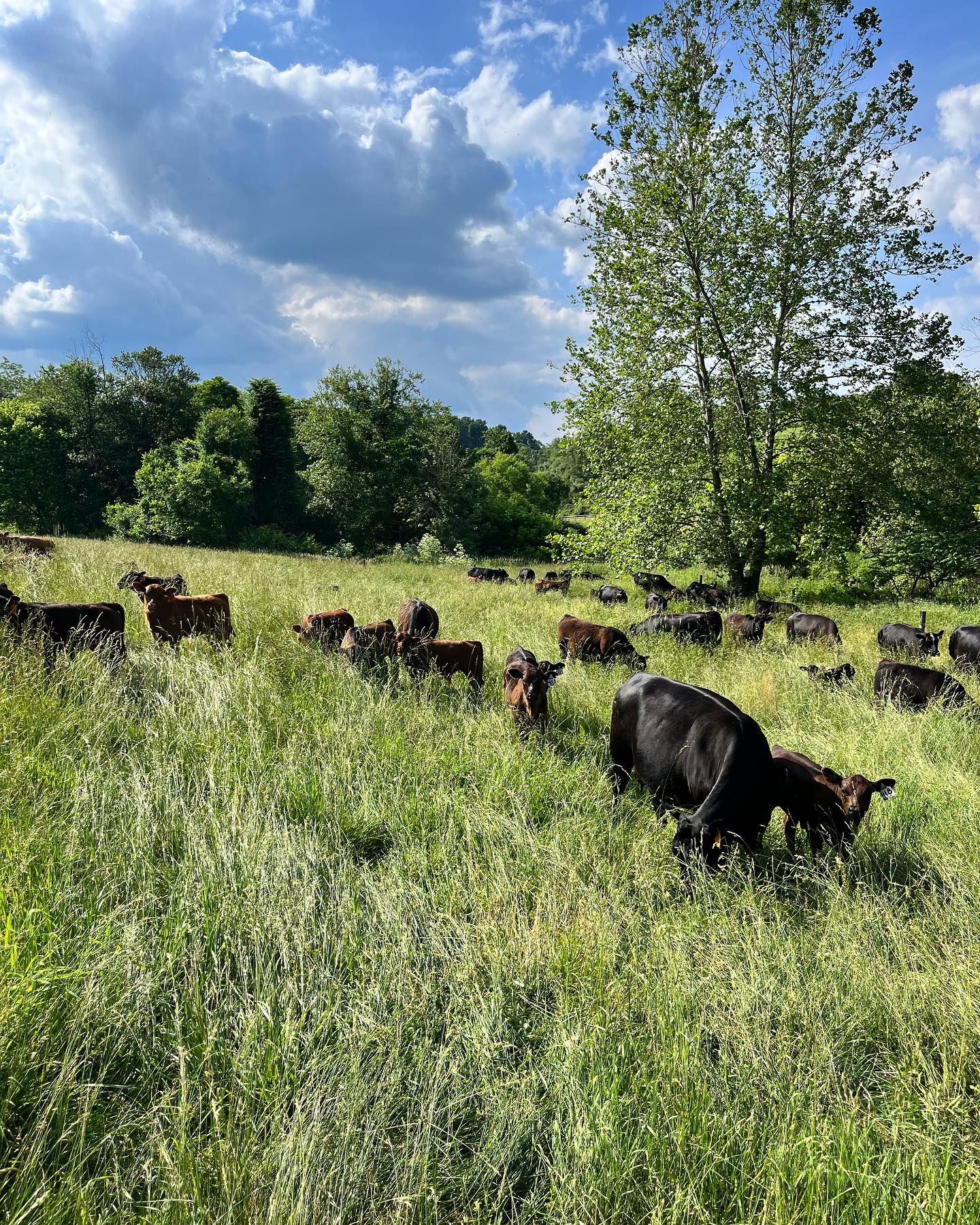 At Bendy Brook Farm we raise our animals naturally and intervene with their routine as little as possible. Our beef are 100% grass fed, and we use rotational grazing practices to keep our farm ecosystem in balance. In the winter they receive hay, maintaining their grass diet. The calves are born in the spring as nature intended and raised in the pasture alongside their mothers.