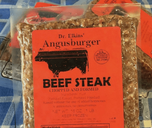 Dr. Elkins’ Beef is made from Angus/Anguscross cattle that spend their entire lives grazing pastures at Buck Run Farm in East Fallowfield, Pennsylvania. They are not fed grain and are handled as humanely as possible. We do not use growth stimulants (hormones or antibiotics).
